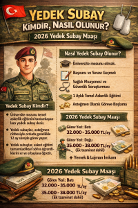 Yedek Subay Kimdir, Nasıl Olunur? Yedek Subay Maaşı 2026 2026 yılında askerlik yükümlülüğünü yerine getirecek olan pek çok üniversite mezunu aday için yedek subaylık, hem bir vatan borcu hem de önemli bir kariyer ve maddi kazanç kapısıdır. Bu kapsamlı rehberde, yedek subaylık süreciyle ilgili merak ettiğiniz tüm soruların yanıtlarını güncel...